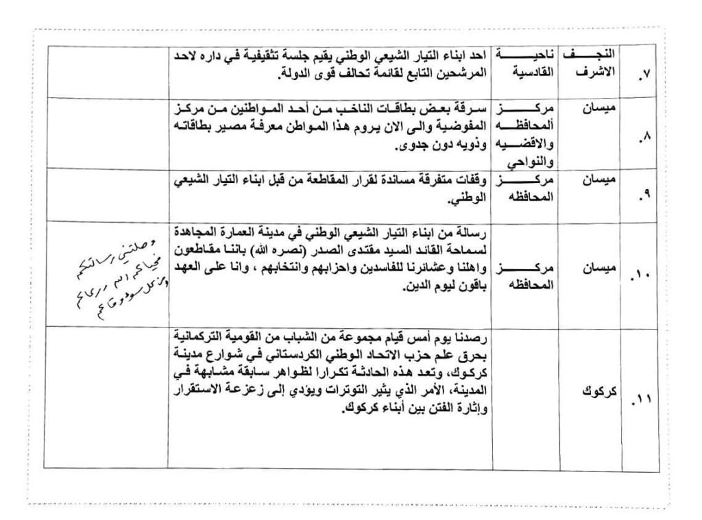 “كما وجّه السيد الصدر تحية إلى المقاطعين من أبناء التيار الوطني الشيعي في منطقة الزعفرانية، مثنياً على موقفهم بالقول: “سلامٌ على المقاطعين”.